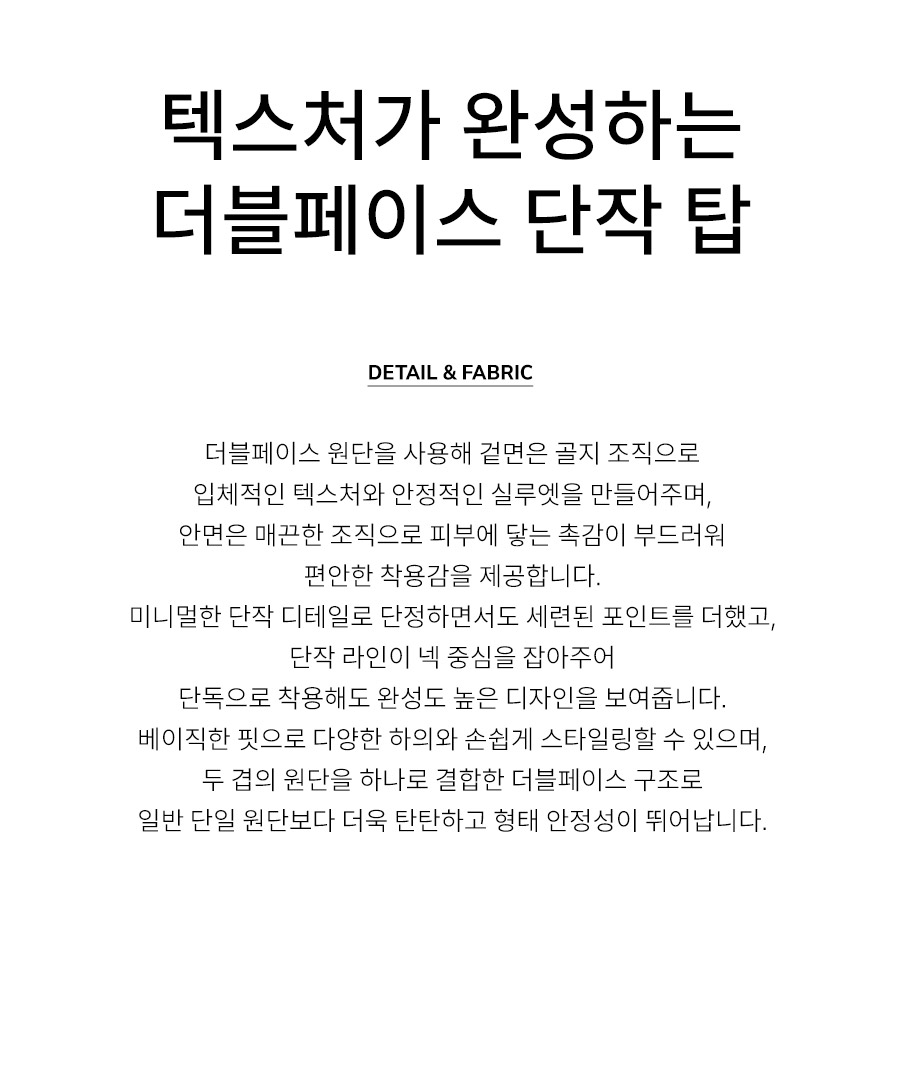 - ´õºíÆäÀ̽º ¿ø´ÜÀ¸·Î °Ñ¸éÀº °ñÁö Á¶Á÷À¸·Î ÀÔüÀûÀÎ ÅØ½ºÃ³¿Í ¾ÈÁ¤ÀûÀÎ ½Ç·ç¿§À» ¿¬Ãâ