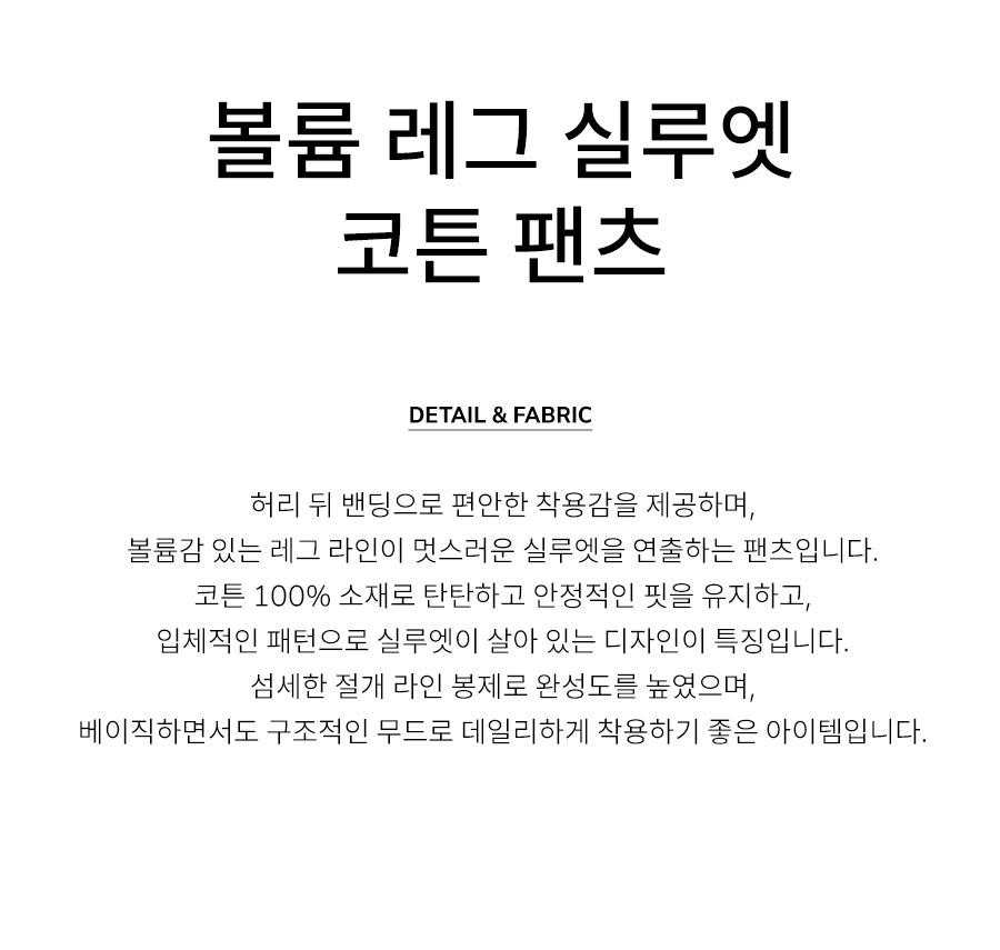 - 볼륨감 있는 레그 라인으로 멋스러운 실루엣