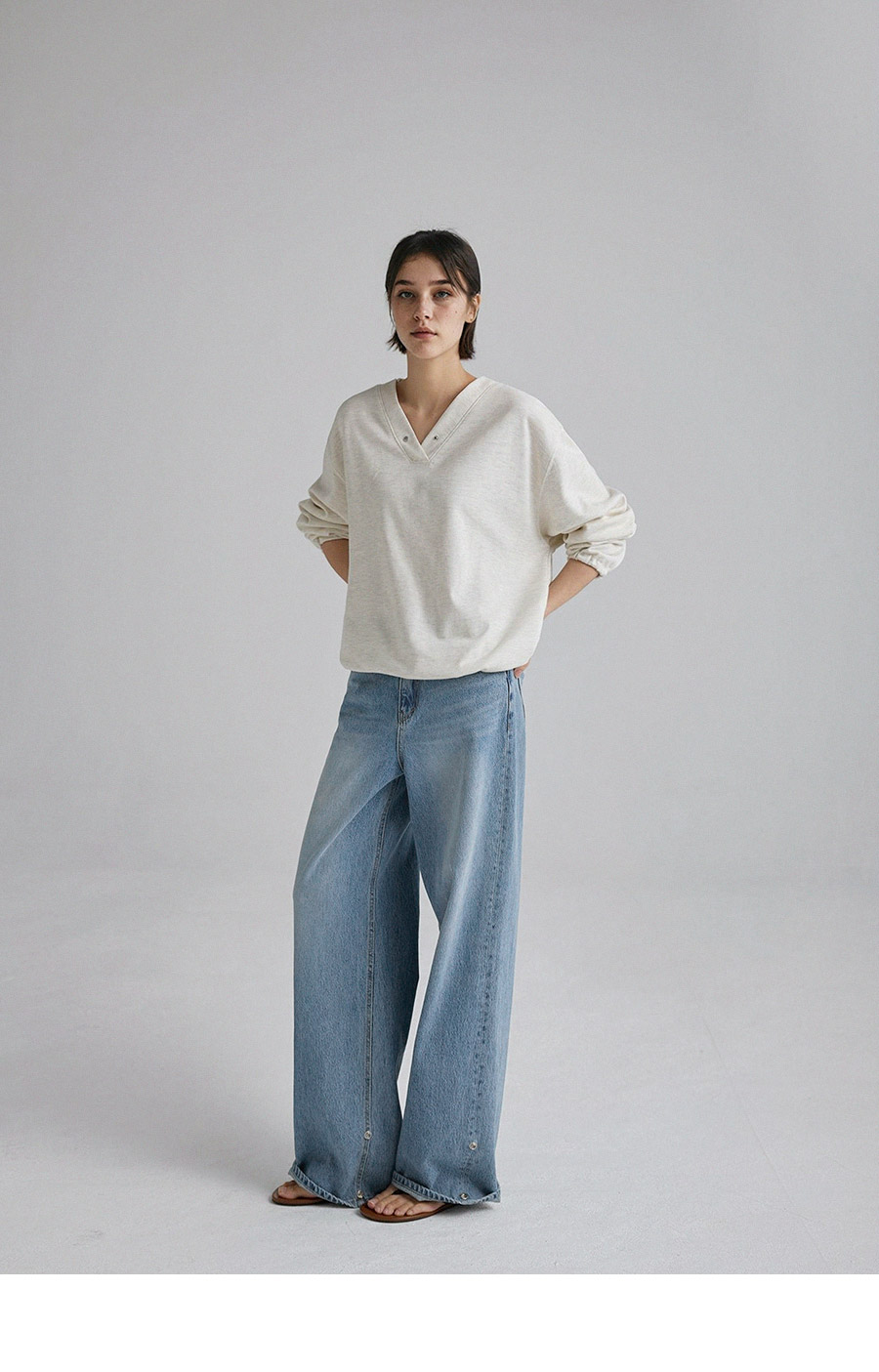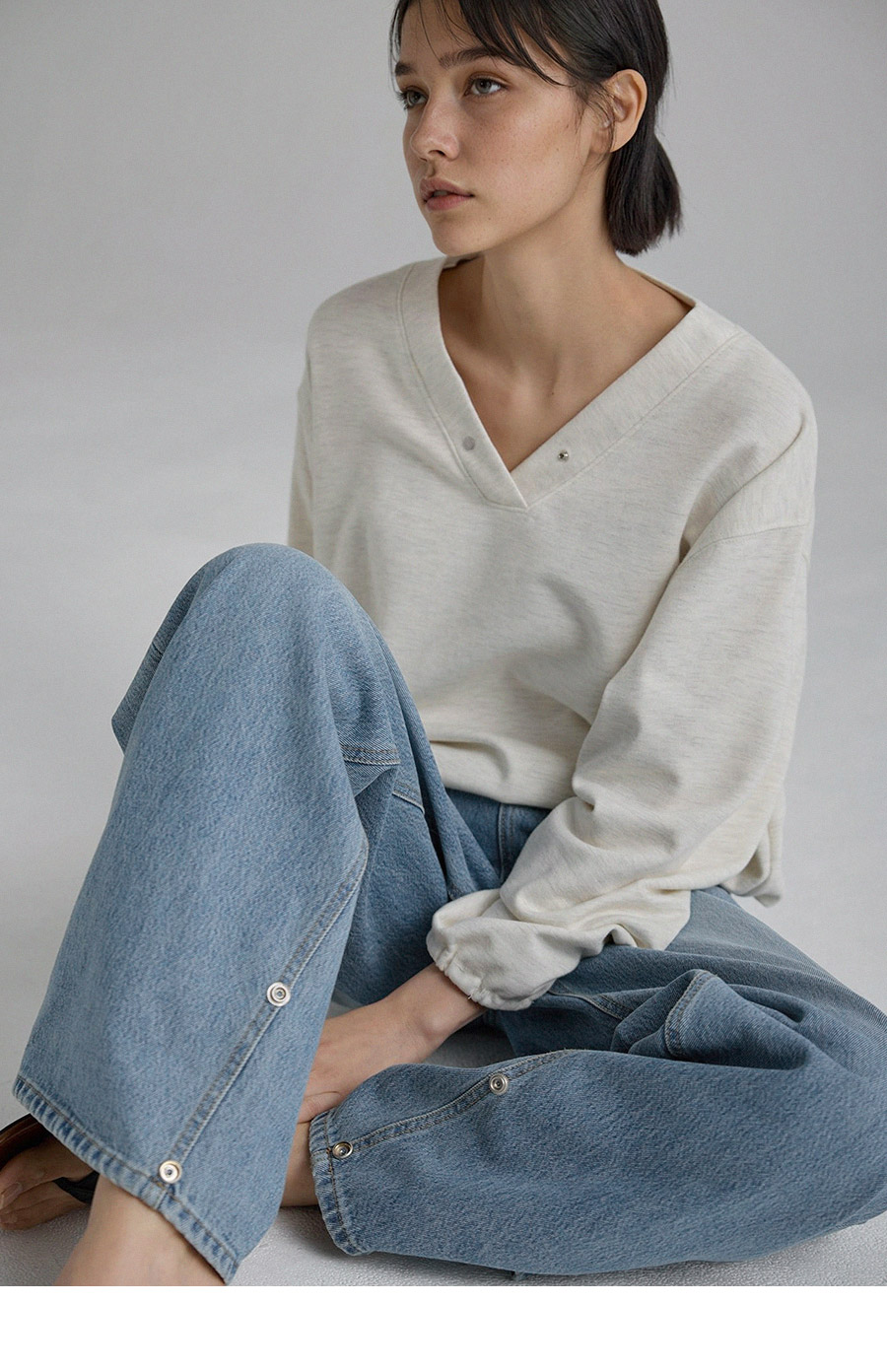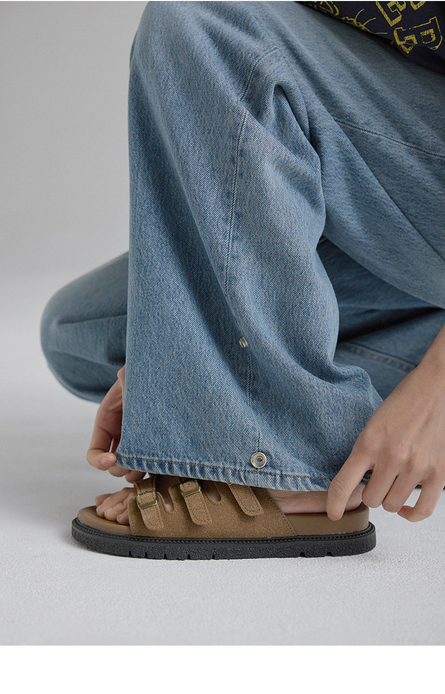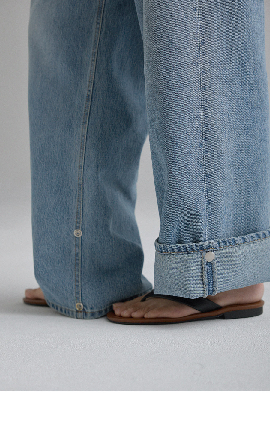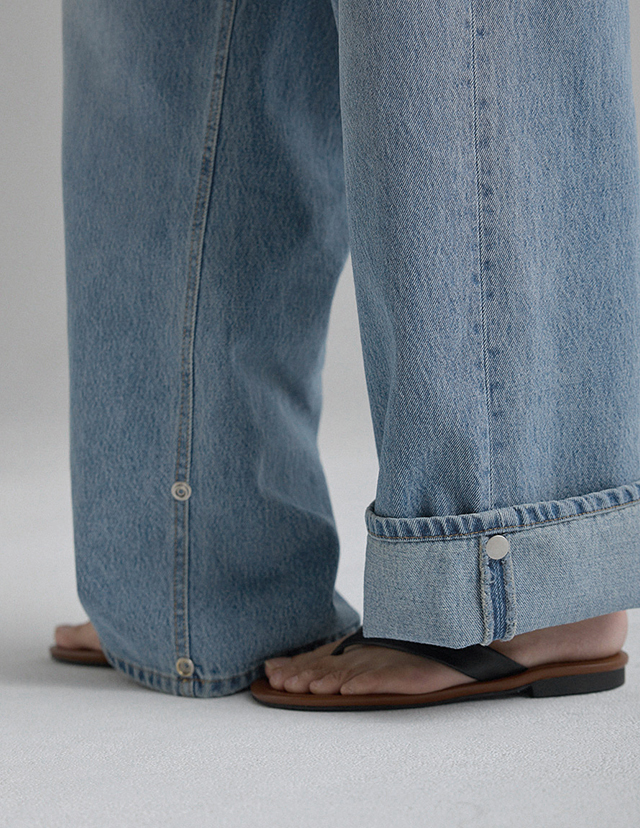 - 밑단에 더해진 스냅 버튼 디테일로 기장 조절이 가능한 디자인