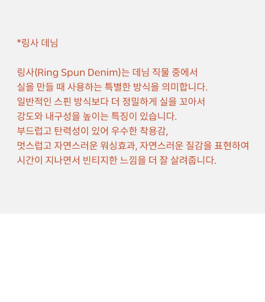 - 프리미엄 데님 원단으로 고급스러운 퀄리티