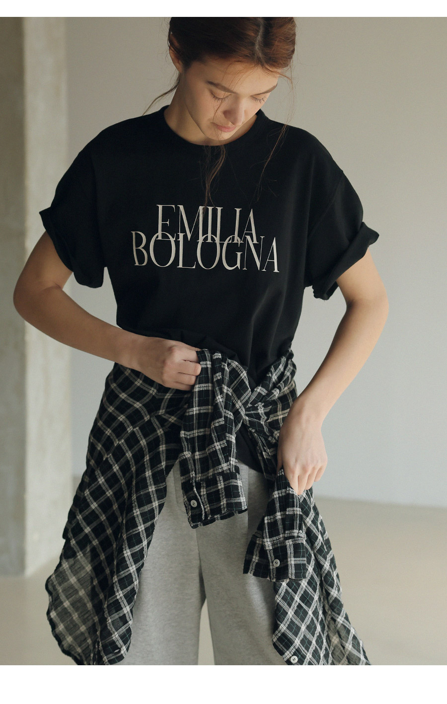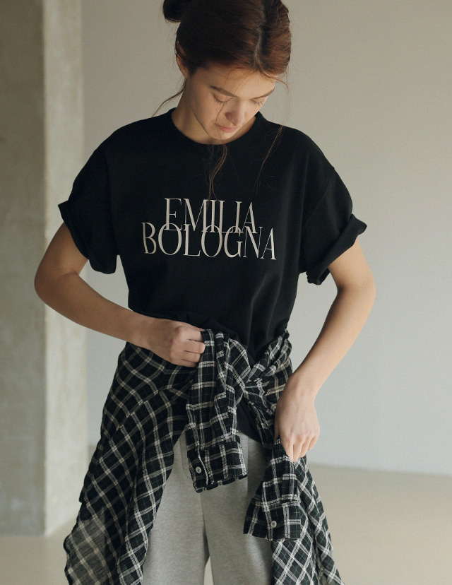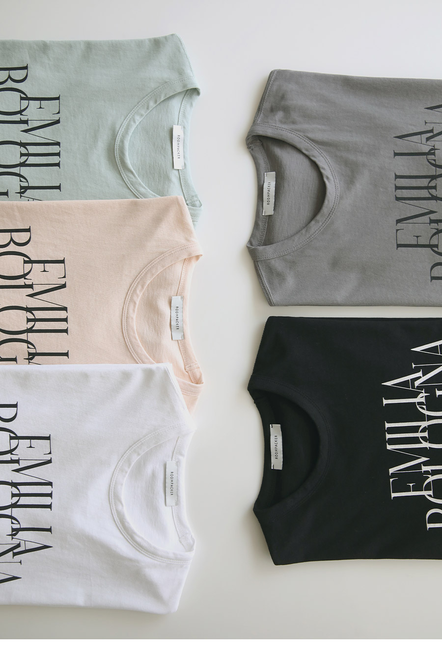 "감각적인 타이포 그래픽이 더해진 반팔 탑"
