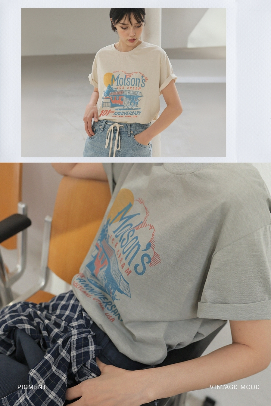 "감각적인 빈티지 무드의 반팔 탑"