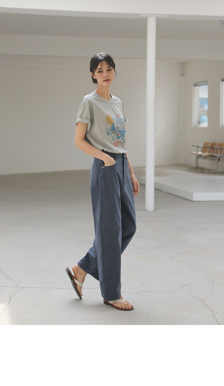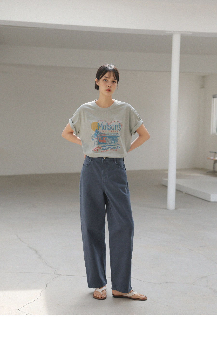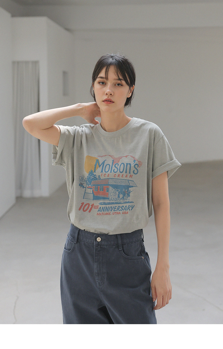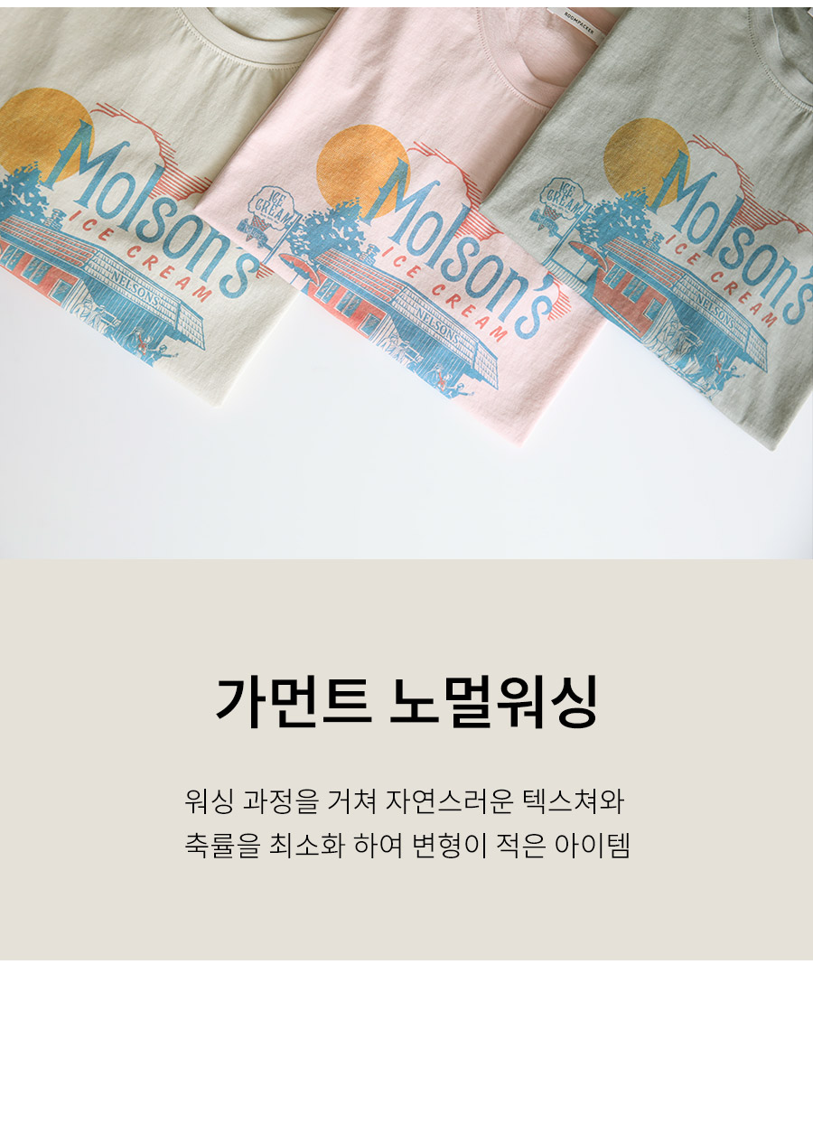 - 가먼트 노멀워싱 : 워싱 과정을 거쳐 자연스러운 텍스쳐와 축률을 최소화 하여 변형이 적은 아이템