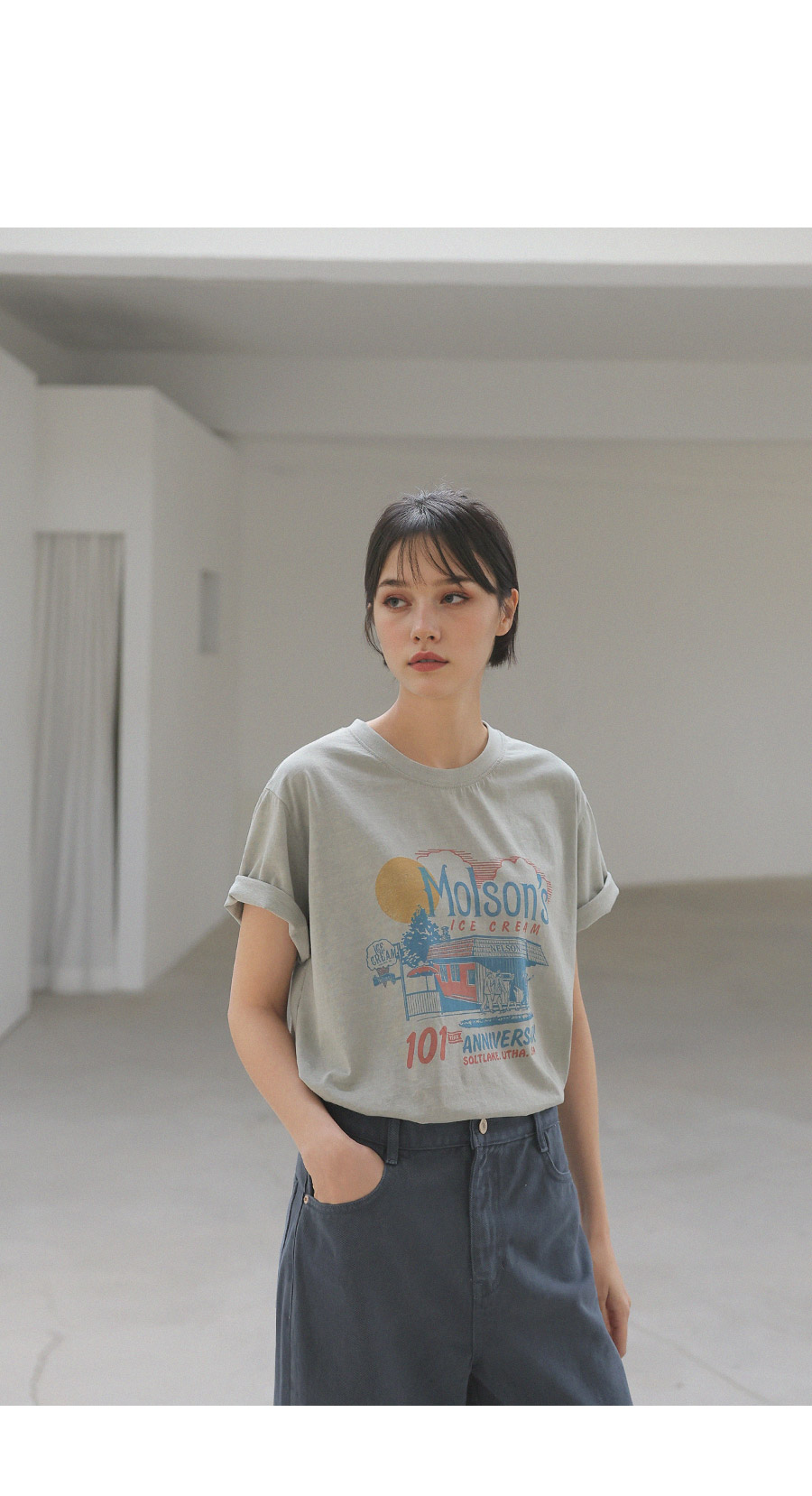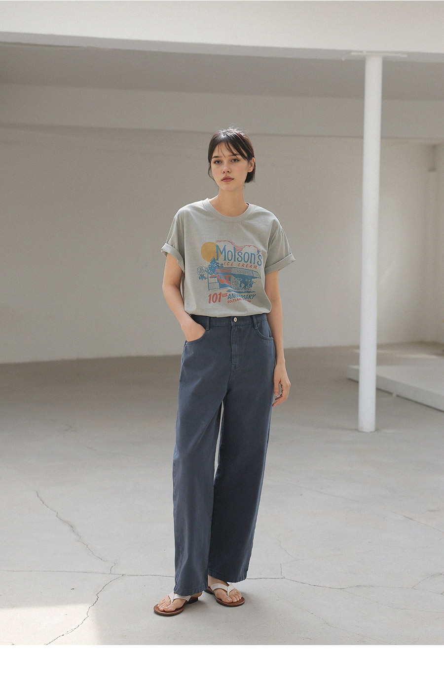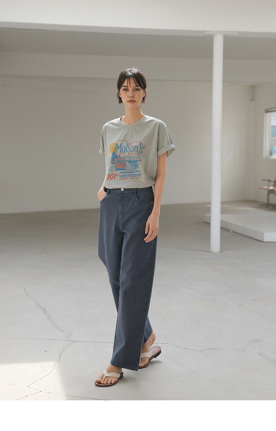 - 가먼트 노멀워싱 : 워싱 과정을 거쳐 자연스러운 텍스쳐와 축률을 최소화 하여 변형이 적은 아이템